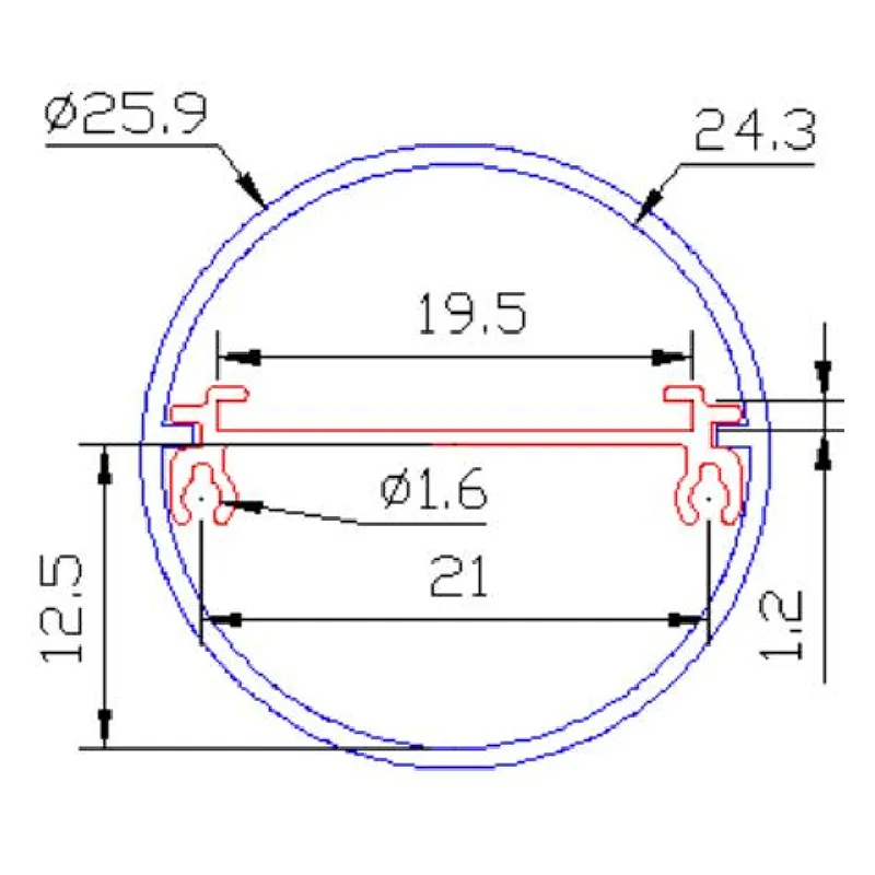 | Lengde | 600 mm, 900 mm, 1200 mm, 1500 mm, 2400 mm eller tilpasset |